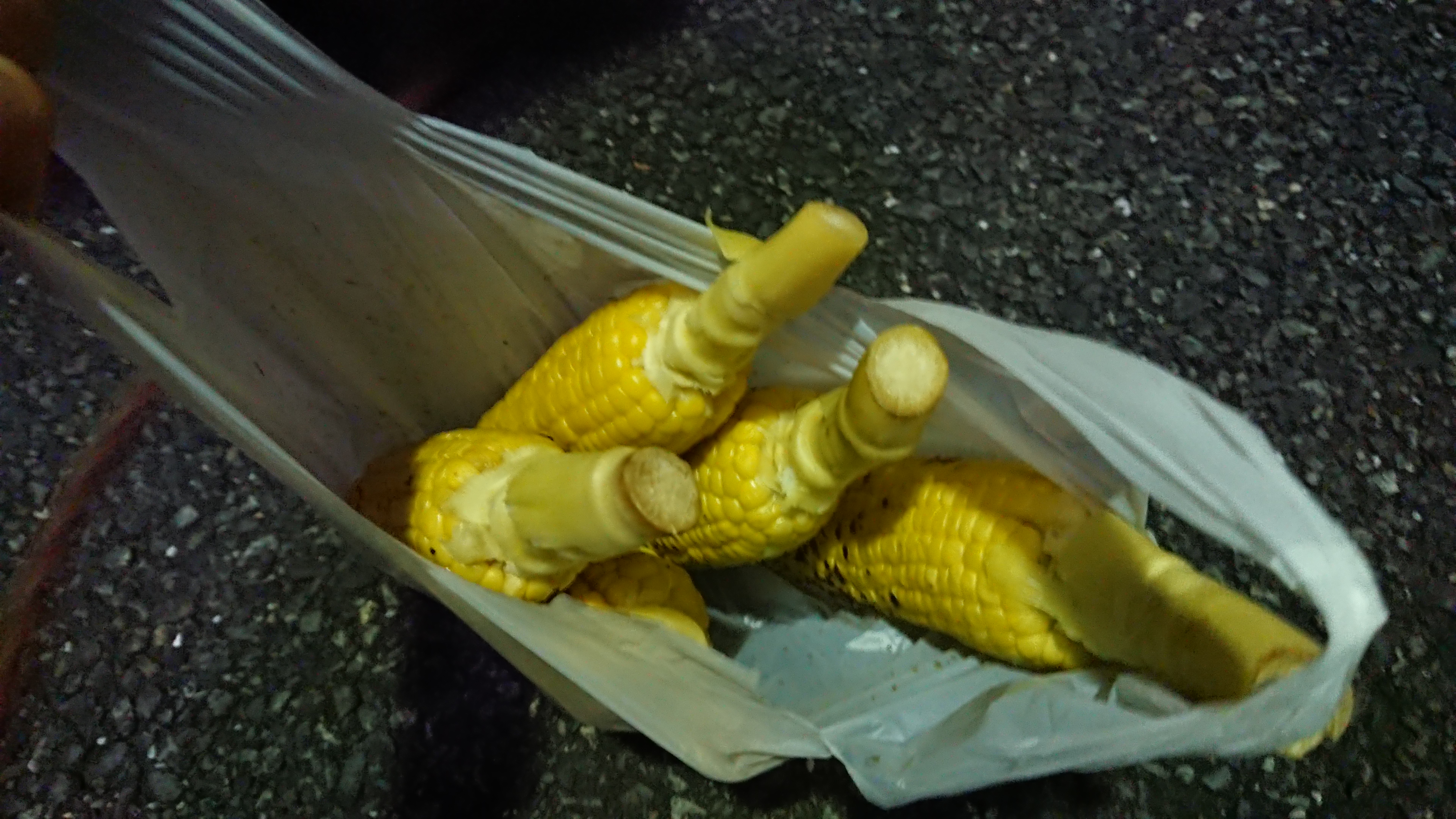 八百屋で振る舞うとうもろこしが激安です(大きさに応じて、150円、200円、250円・・・的屋ならば400円以上します)