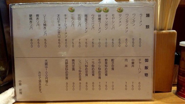 ラーメンが500円。