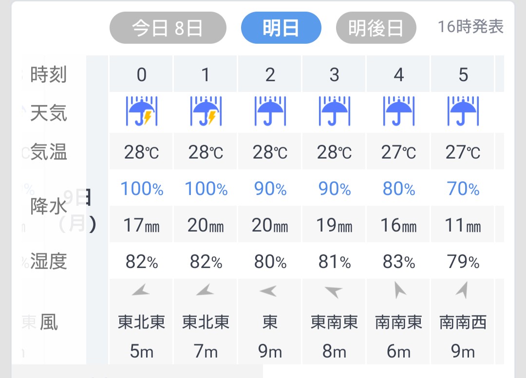 9/8 19:00のレーダー予想