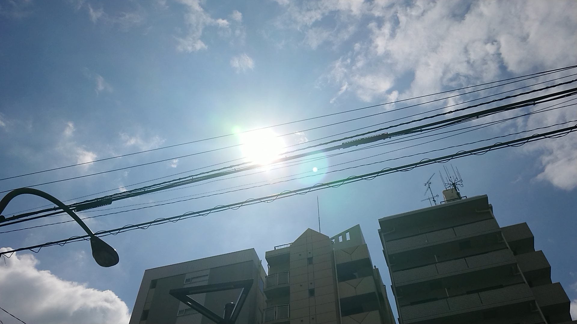 列び待ち時間中、南の方角から照りつける太陽の光。