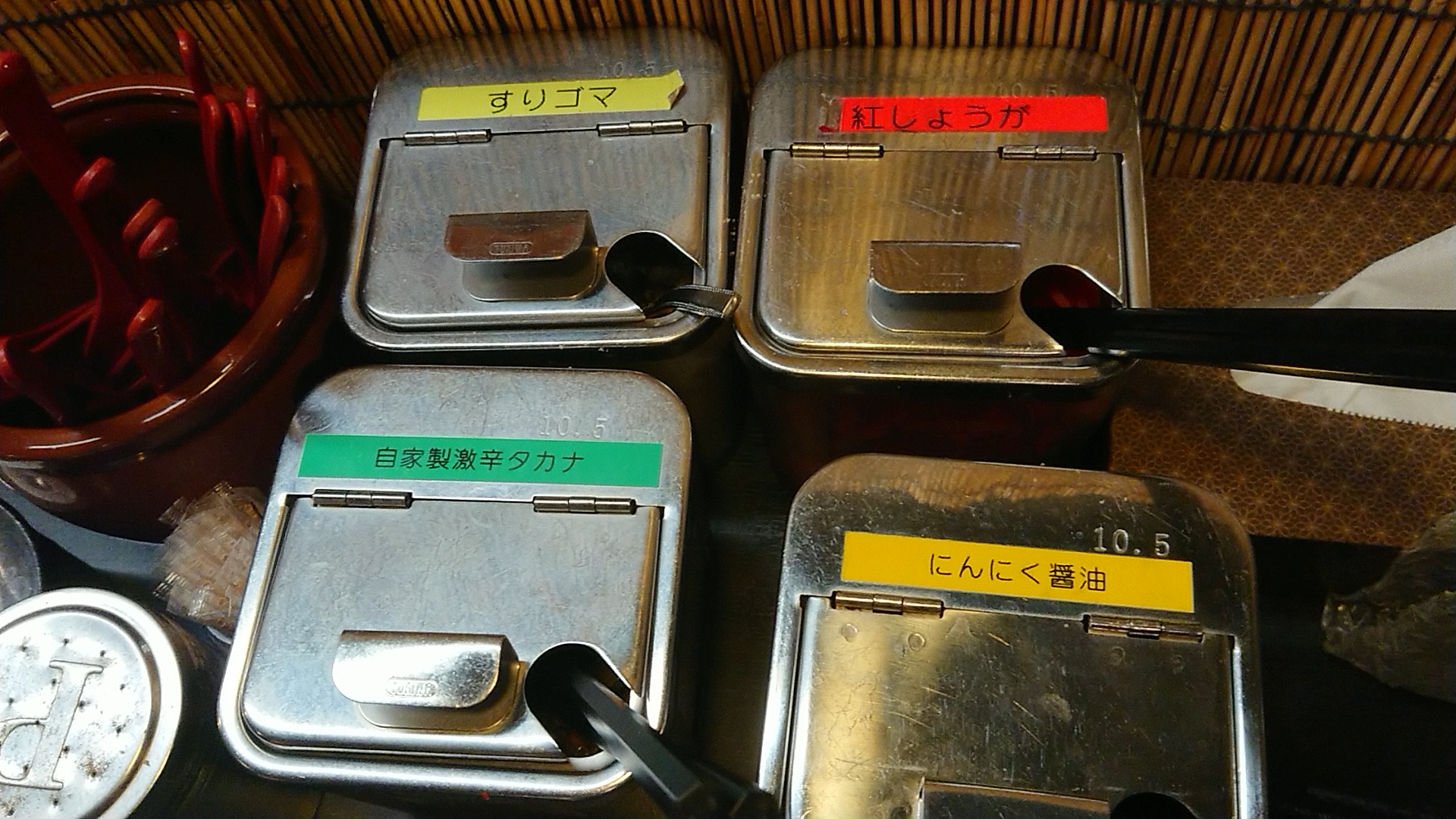自家製激辛タカナ・ニンニク醤油・紅しょうが・すりゴマ