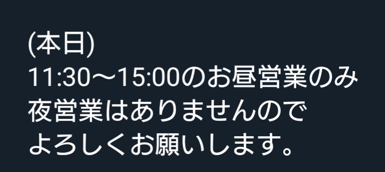 11:30〜15:00のお昼営業のみ