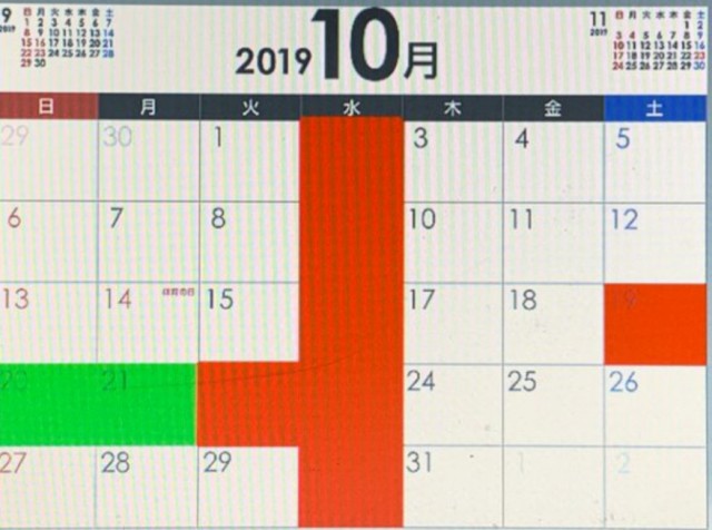 【2019年10月営業スケジュール】