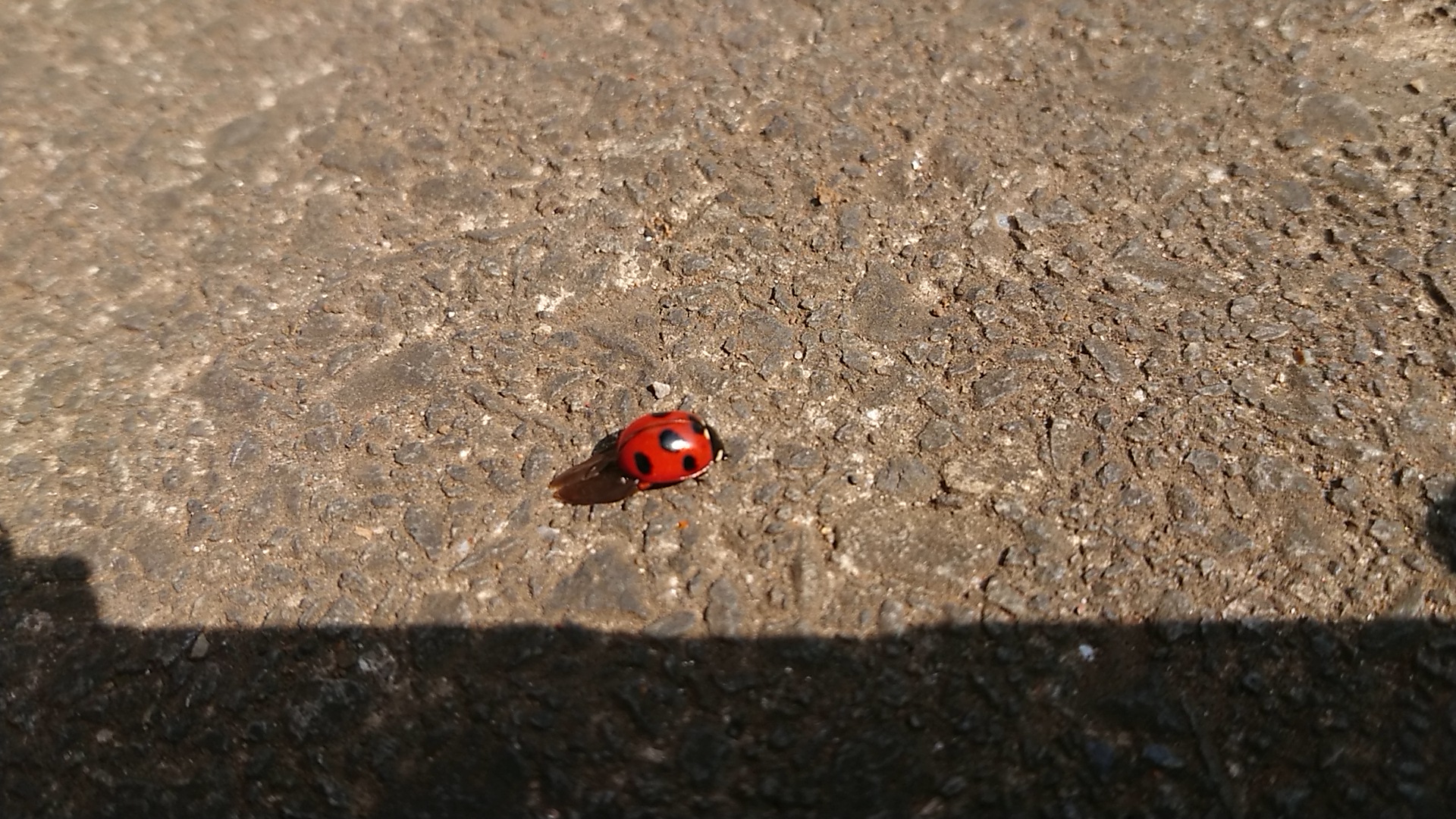 帰り道、西落合の図書館前でてんとう虫発見!