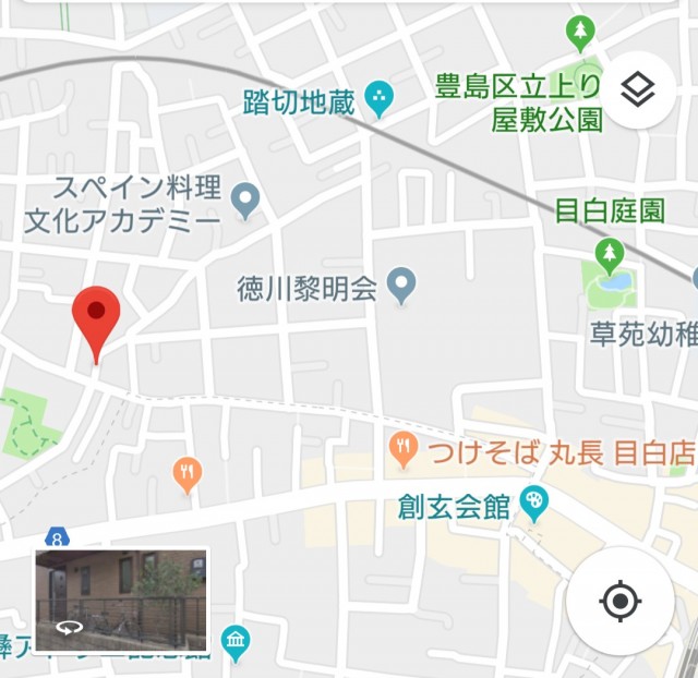 チェックマークは豊島区目白4-4と4-15の間の道