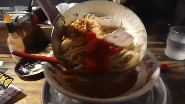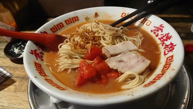 赤とんこつらーめん 850円・・・トマト(標準・ただし替玉のみ標準と細麺から選択)