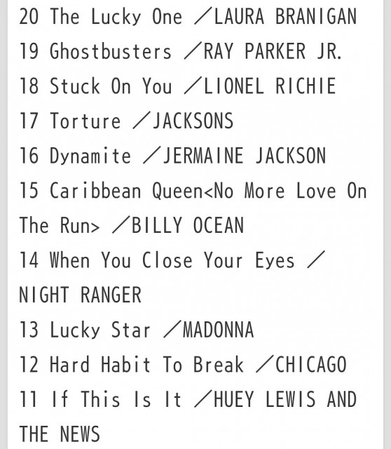 【麺や金時】第13食 全米トップ40 THE 80’S 1984年9月29日付billboardチャート(AM1422kHzラジオ日本 2019/10/10 25:00放送分) 2019/10/13