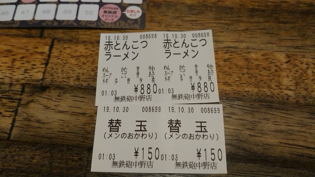 無鉄砲とんこつ生ラーメン 780円→800円