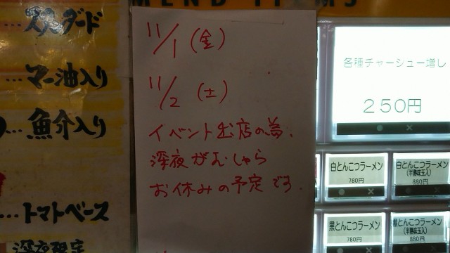11/1と2の東京がむしゃらは、松戸のイベント出展のため、臨時休業となる。