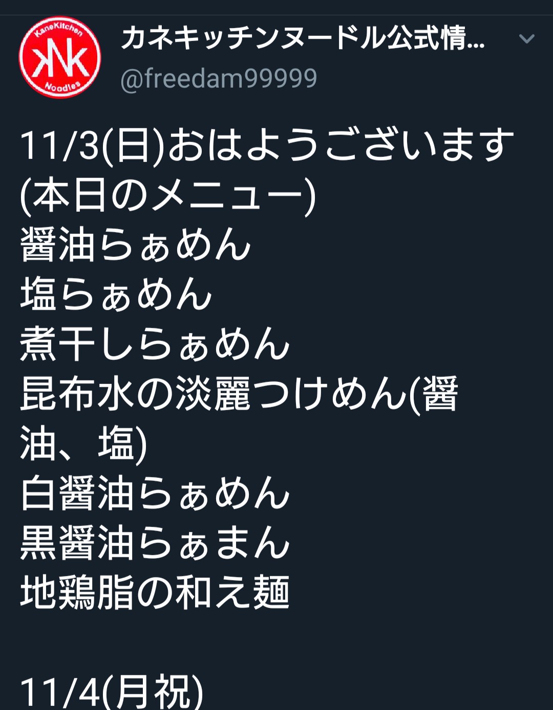 【カネキッチン】第224食 Twitter告知なし!今夜も引き続き限定「地鶏白湯らぁめん(鴨ロース添え)」 2019/11/03