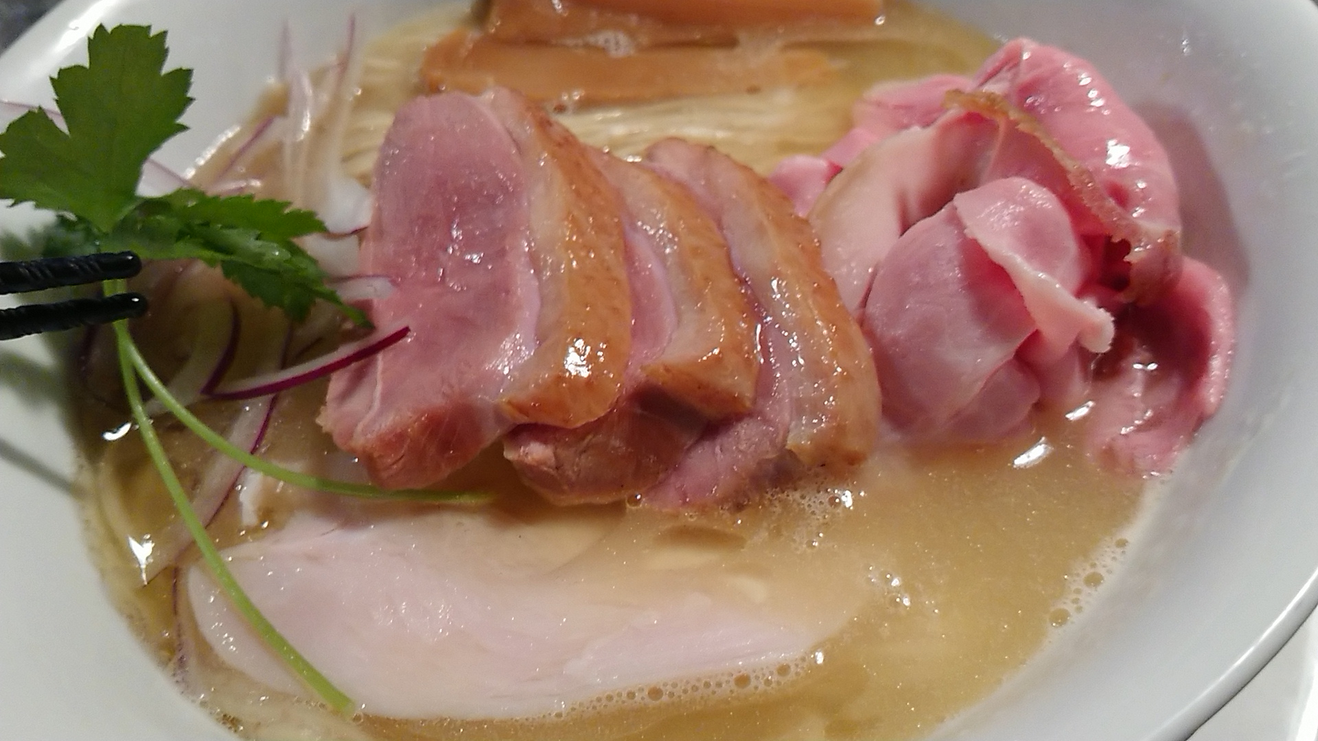 地鶏白湯らぁめん(鴨ロース3枚添え)1200円