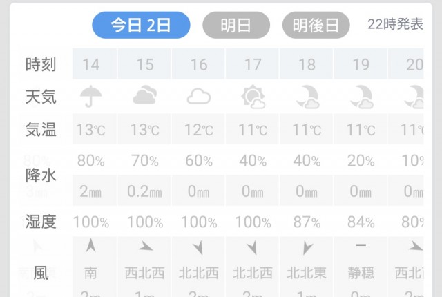 天気予報では、11:00から気温が16~18℃まで上昇するとのことだったが、一時的に晴れ間が覗いたときだけ気温が高くなるに過ぎず、天気予報は大ハズレだった。
