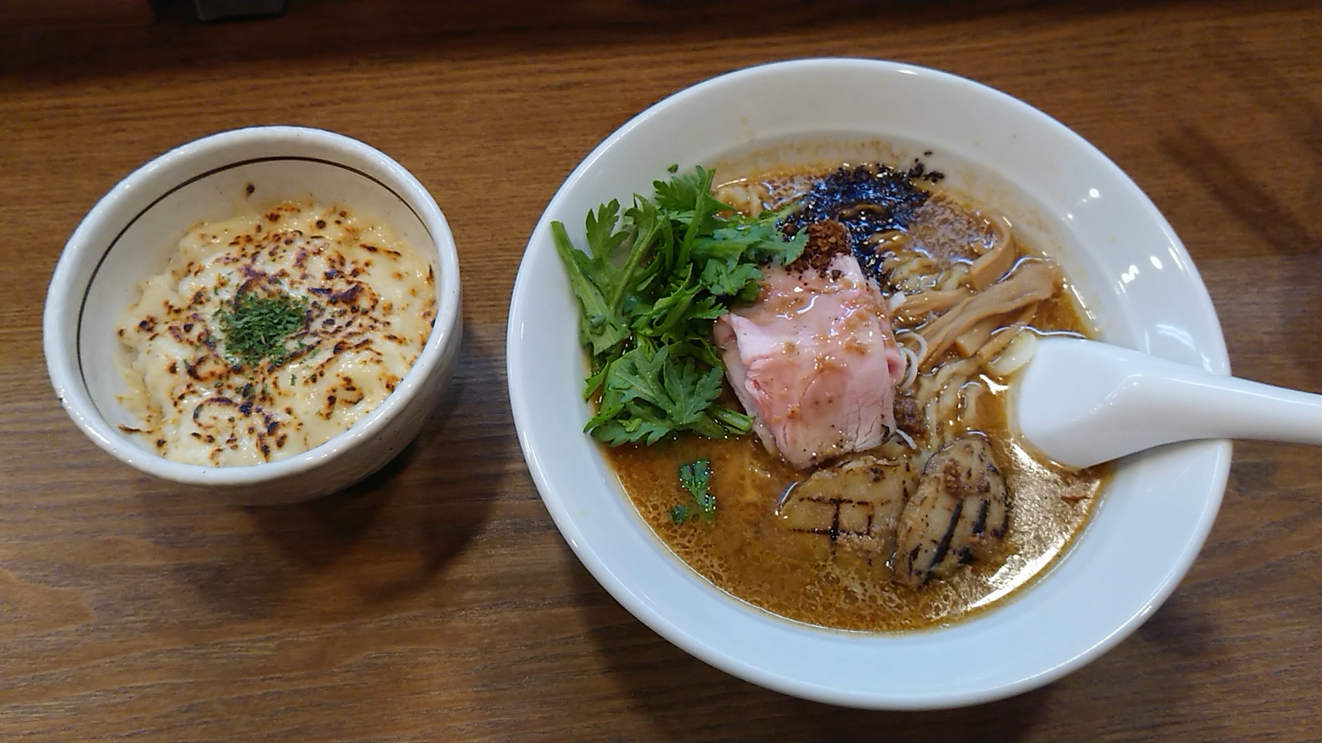 ご飯にチーズを散りばめて、上層をバーナーで焼きます。#主殿高円寺 pic.twitter.com/CNOzQDLSaR— 肥前国島原藩 隠れ切支丹大名 松平主殿頭 (@ramen_de_sinus) December 13, 2019