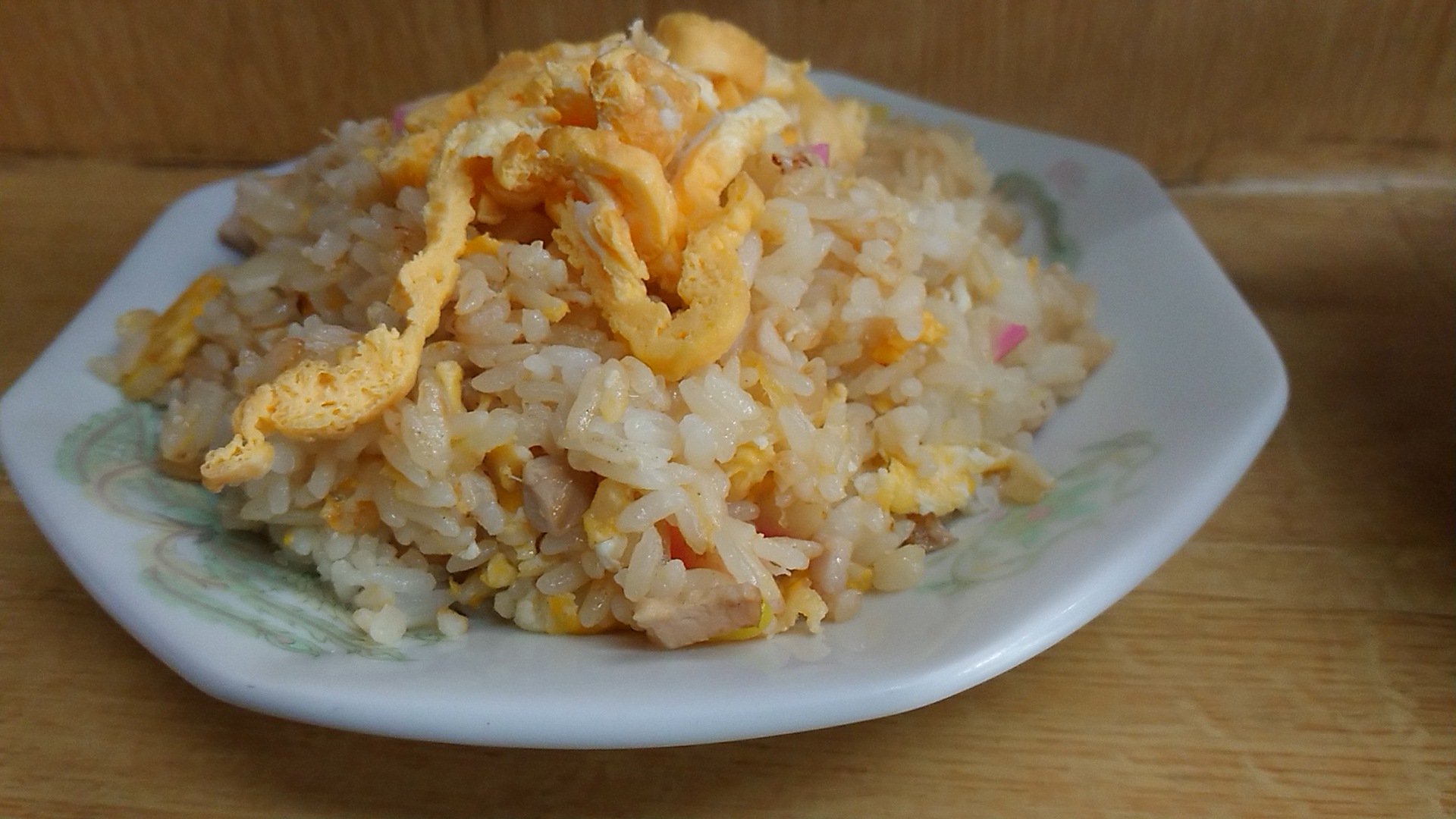 推定3、4歳くらいのちびっこが、ちゃーはんをパクパク食べていて、お母さんの分も食べちゃったって(笑)