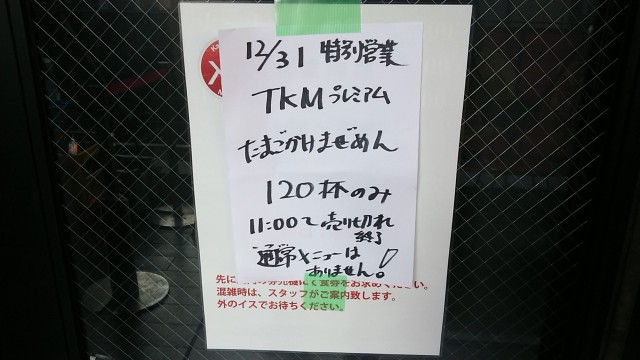 【カネキッチン】第263食 2019大晦日ファイナル営業「TKMプレミアム(たまごかけまぜめん)」限定120杯~サンドイッチマン「ぶーたんチャンネル」が邪魔! 2019/12/31