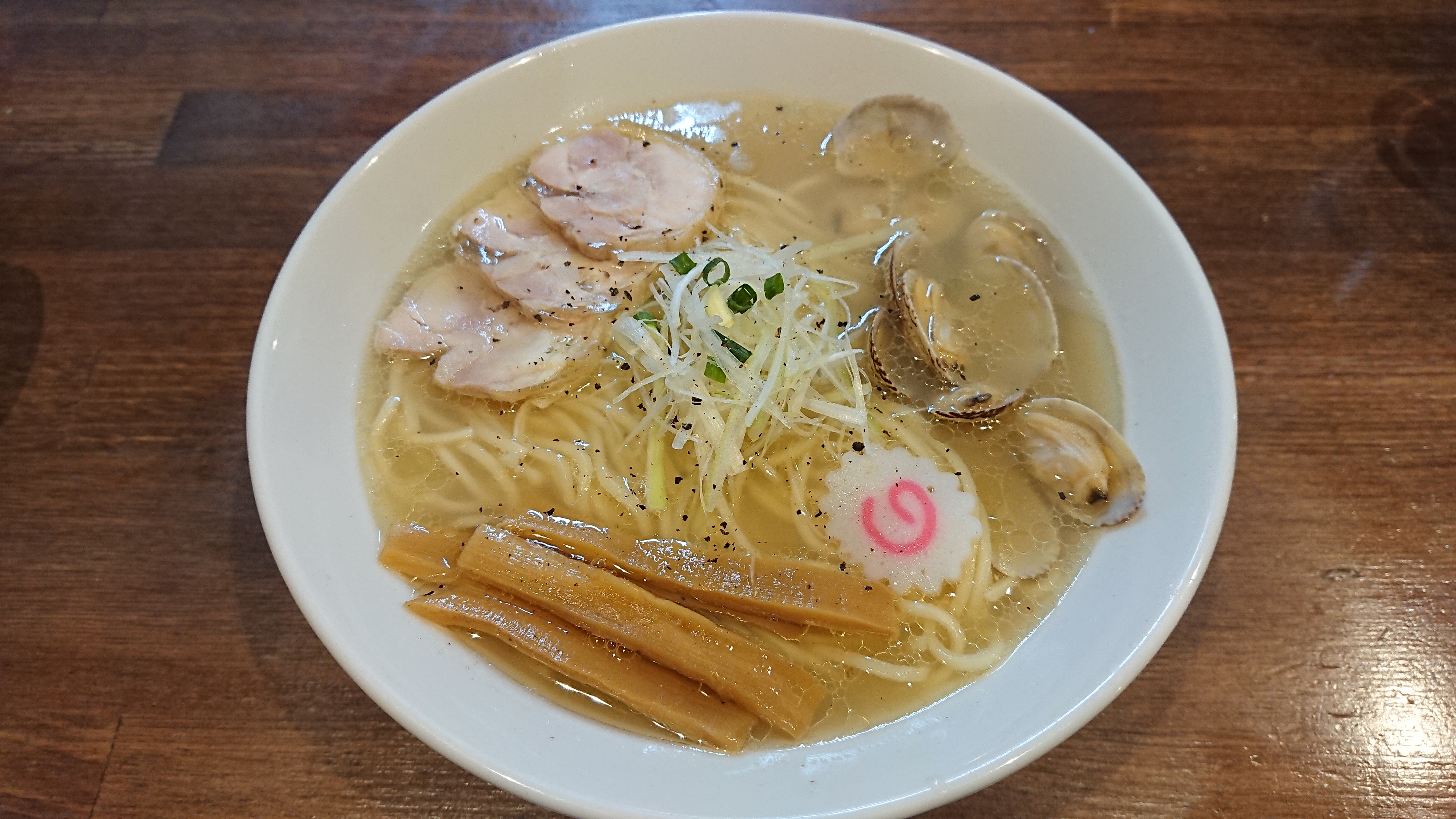 店頭に貼り出されていたアサリ入りのラーメンの写真を見て「黄金の塩ラーメン」に決定!