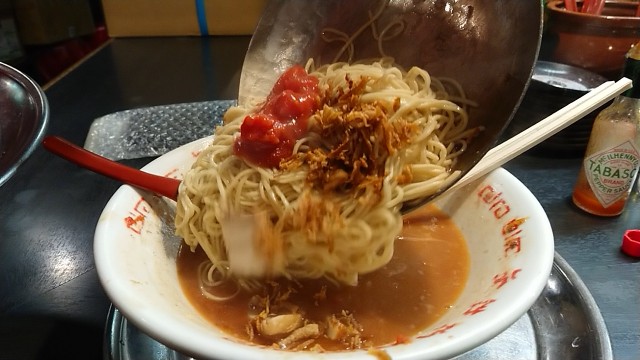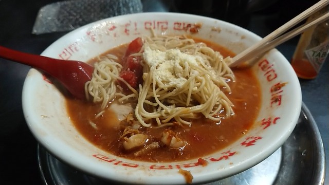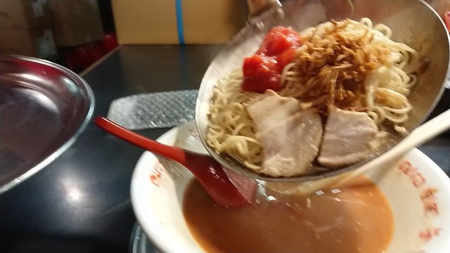 赤とんこつらーめん 850円・・・トマト(標準・ただし替玉のみ標準と細麺から選択)