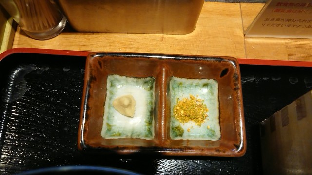 薬味は山葵と柚子七味