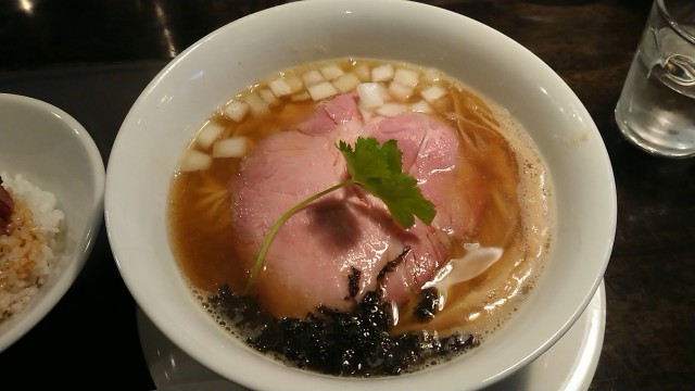 特注の平打ち中太ストレート麺で食べる煮干しらぁめん(大盛サービス) 880円