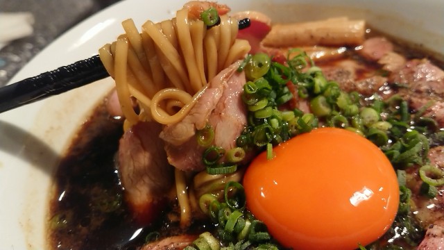 ブラック肉玉らぁめん(平打ち中太ストレート麺大盛サービス)1000円