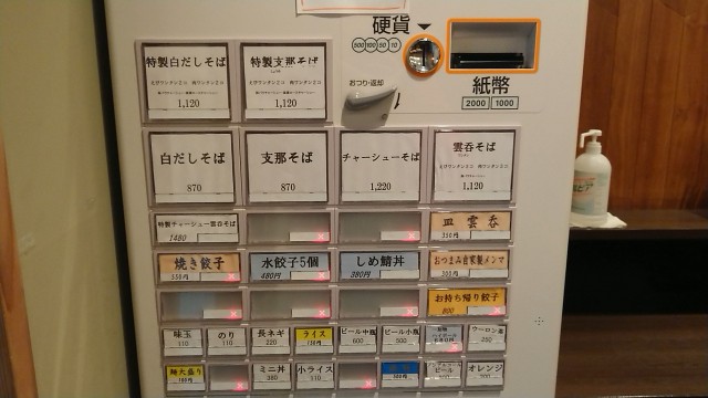 券売機をみて、屋号にもなっている「支那そば」をチョイス。
