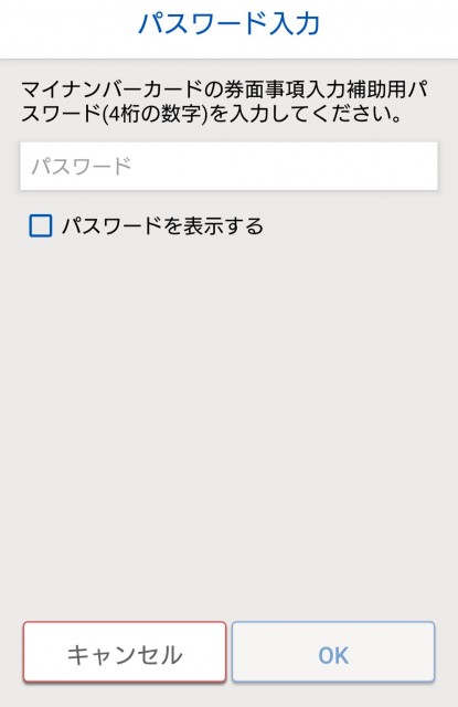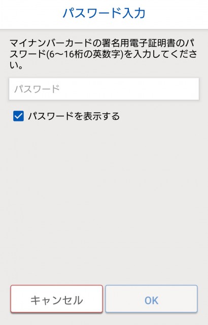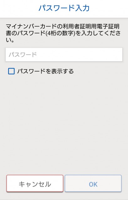 利用者証明用電子証明書パスワード入力