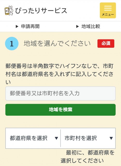 まずは地域選択