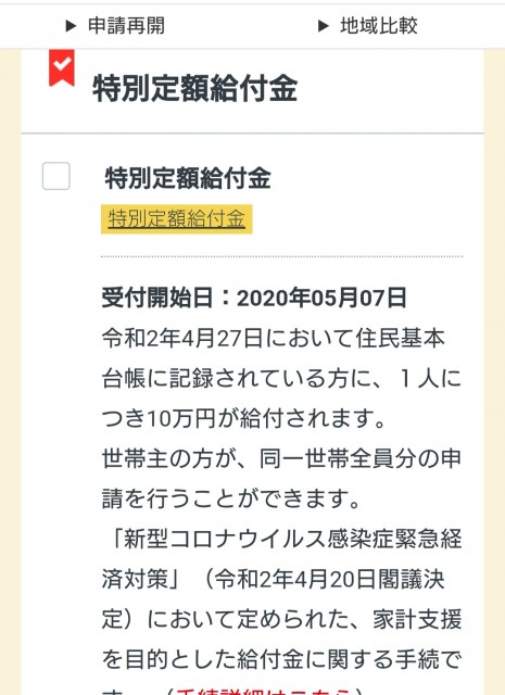 まずは特別定額給付金の結果です。
