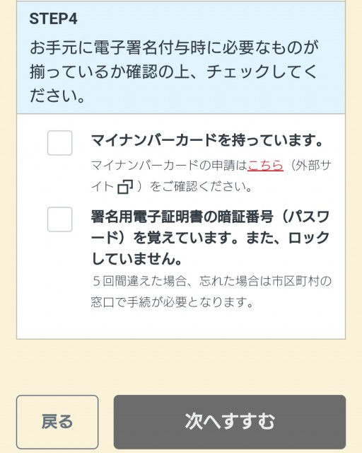 必要事項にチェックし「次へすすむ」をクリック