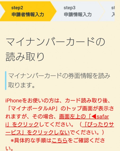 「マイナンバーカードを読み取り」をクリック