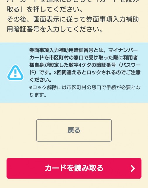 マイナンバーカードのセット画面