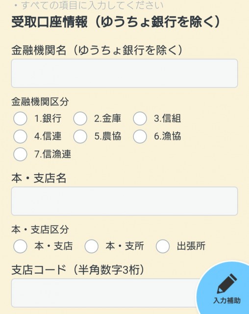 ここで、振込先金融機関情報を入力し、「次へすすむ」をクリック。