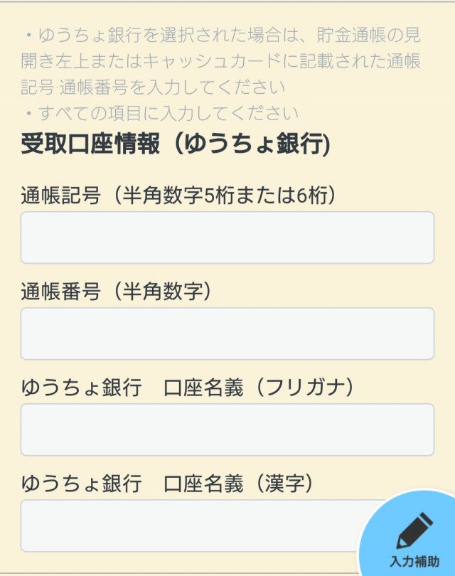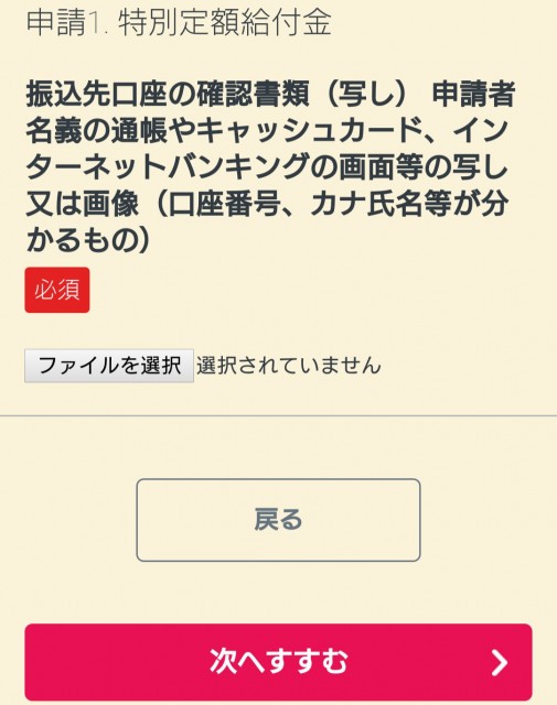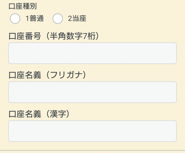 振込先金融機関の通帳の画像を添付する。