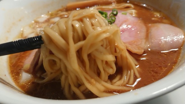 赤味噌らぁめん(特注 平打ち中太ストレート麺) 880円