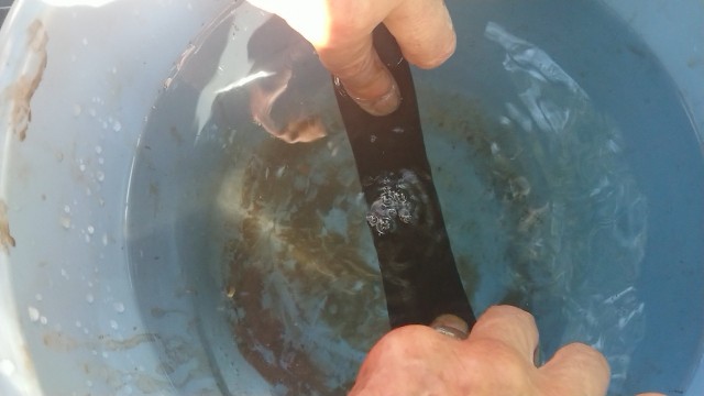 タイヤにトゲ発見、チューブの空気穴2箇所見事発見!