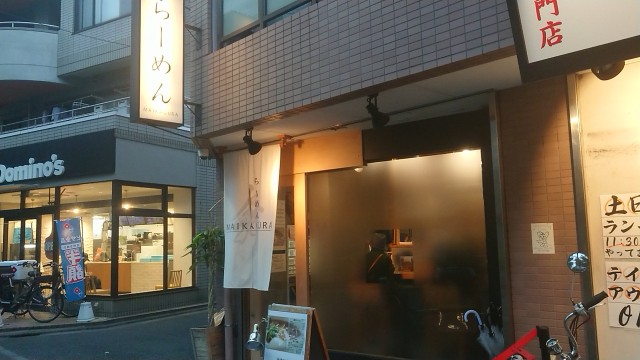 「YOKOHAMA中華そばかみ山」利用後、経堂五丁目交差点を通過し、「らーめんMAIKAGURA」に、オープン5分前に到着。