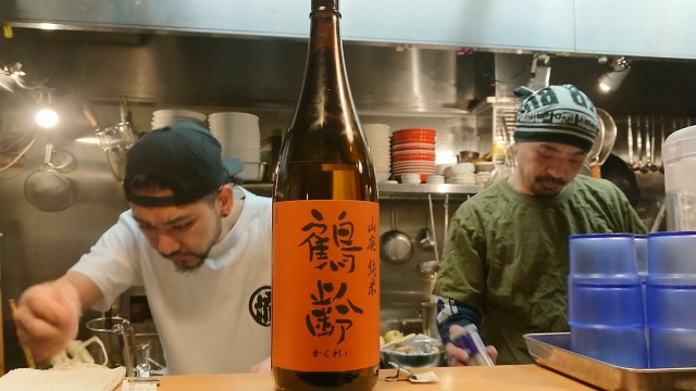 【煮干そば流。/逆流】第1食 正月営業初日の”振る舞い酒”はコシヒカリで有名な新潟県魚沼産山廃純米酒「鶴齢」(青木酒造) 2020/01/02