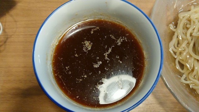 麺完食後、つけ汁に、昆布水と薬味を入れる。