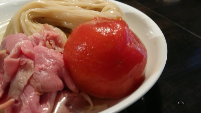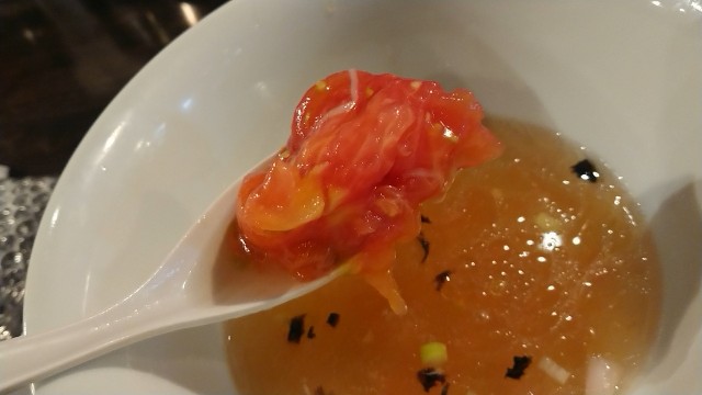 ①塩ダレのつけ汁と相俟ってミネストローネみたい!原価100円冷やしトマトトッピングサービス