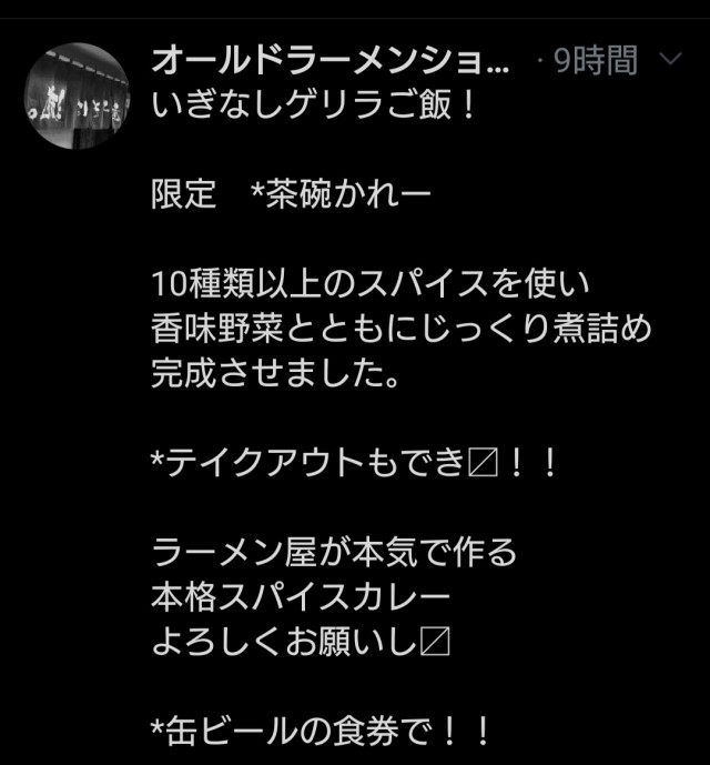 茶碗かれー 400円#主殿板橋本町 pic.twitter.com/c9AEXf52mK— 頂点補食者VS遊軍 (@ramen_de_sinus) September 12, 2020