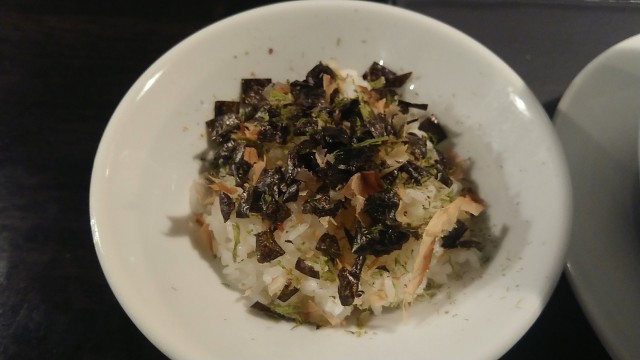 なんと、なんと、大将の粋なはからいで、大盛サービスの代わりに、スープ茶漬けセットをサービスしてくれた!