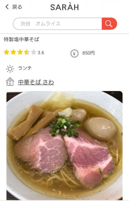 SARAH JAPAN MENU AWARD 2019 ラーメン淡麗部門 中華そばさわ 特製塩中華そば 850円