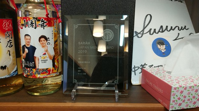 【中華そばさわ】第3食 いきなり受賞プレートが届く!「SARAH JAPAN MENU AWARD 2019」関東エリア ラーメン淡麗部門”特製塩中華そば” 2020/01/29