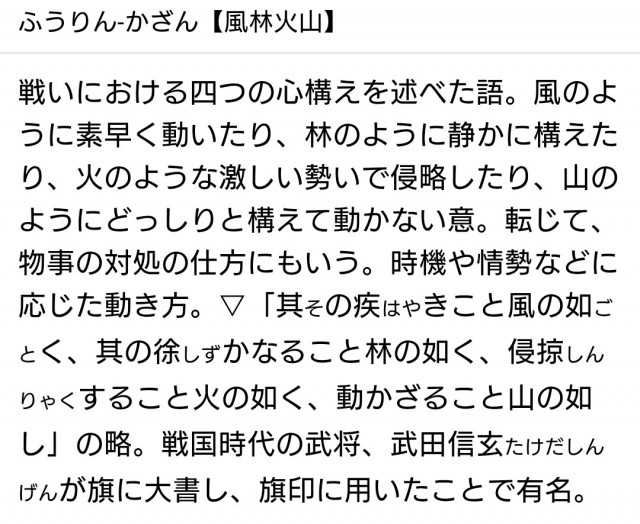 俺は「風林火山」なんて意識していなかったのに、誰から教わるまでもない。