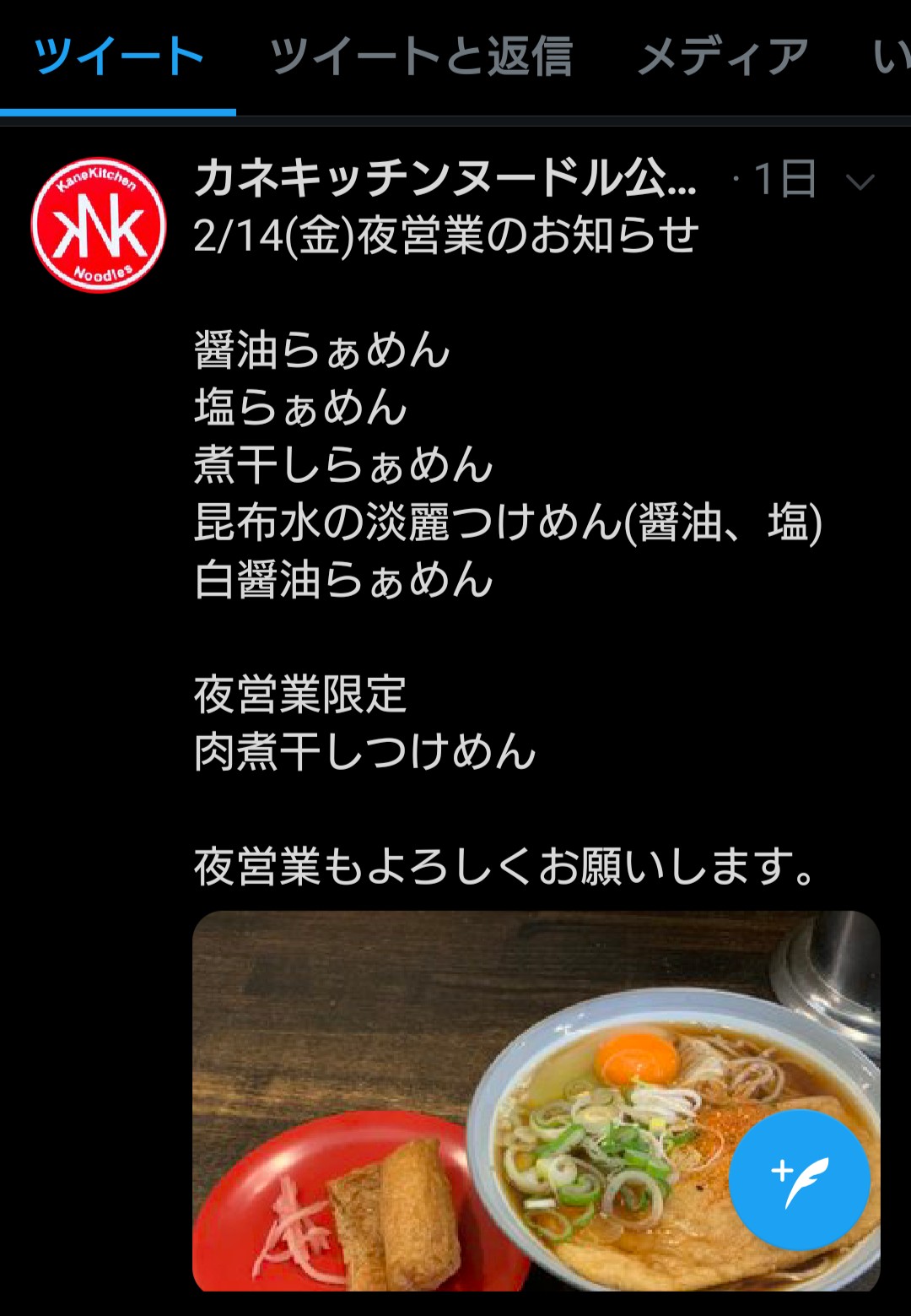 カネキッチンTwitterを久々に見たら、限定肉煮干しつけめんやってるみたいだし!