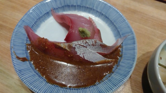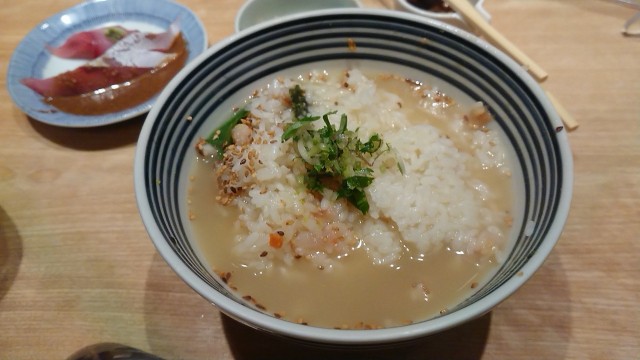 そこで、別皿の鯛刺身を投入して食べるっていう遊び心のあるアイデアなんだよ!