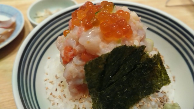 ここは、人気ラーメン店のつじ田と、天丼の金子半蔵のオーナーが協同で立ち上げた海鮮丼のお店だ。