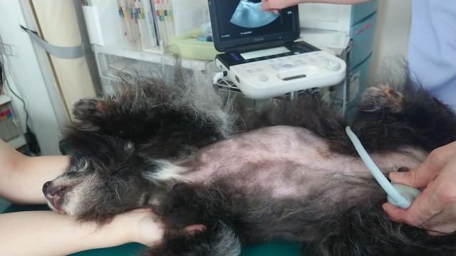 早速、獣医さんにせがんで、エコーで膀胱を見てもらった。