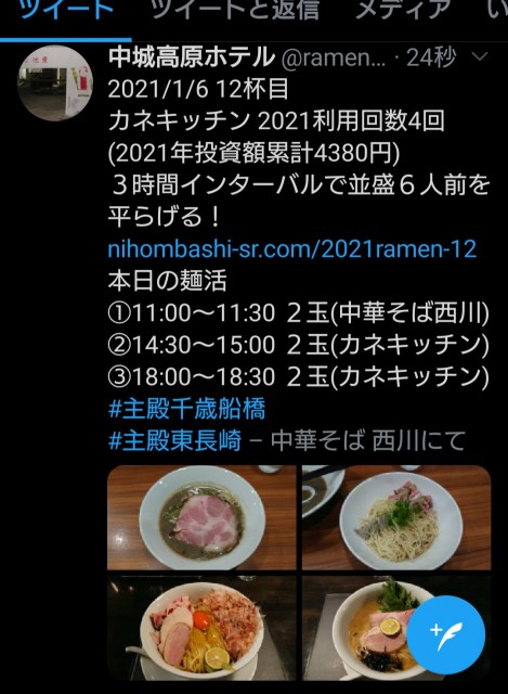 ③18:00~18:30 2玉(カネキッチン)#主殿千歳船橋#主殿東長崎 pic.twitter.com/91YaxkhD6g— 松本 (@ramen_de_sinus) January 6, 2021