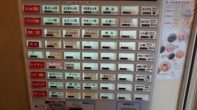 取り敢えず、後ろにお客さんが並んでいたので、彼是考えないで定番メニューを購入した(券売機の写真は、お店を出るときに撮影)